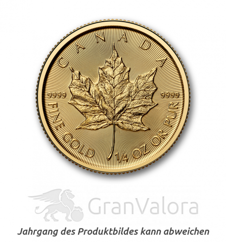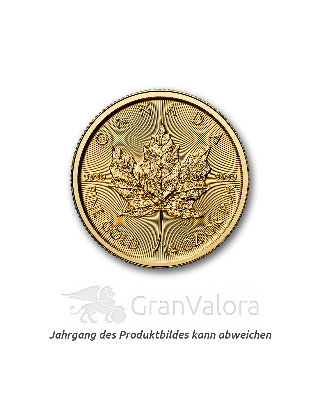 Der Nennwert der „1/4 Unze Maple Leaf Goldmünze“ beträgt 10 CAN-Dollar. Die Münze besitzt eine Feinheit von 24 Karat und ist als Konzession an die Zweisprachigkeit Kanadas in englischer und französischer Sprache beschriftet. Seit 1988 wird auch eine Maple Leaf-Version in Silber angeboten. Das Maple Leaf in Gold ist als gesetzliches Zahlungsmittel wie alle Goldmünzen und Goldbarren in Deutschland umsatzsteuerbefreit.