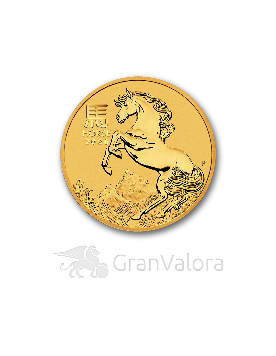 Die Motivseite jeder Münze ziert ein prächtiges Pferd mit erhobenen Hufen, das Kraft und Ausgeglichenheit ausstrahlt. Stilvoll ergänzt wird das Motiv durch das chinesische Schriftzeichen für Pferd und den englischen Begriff mit identischer Bedeutung. Das traditionelle kleine P weist wie gewöhnlich auf den Hersteller Perth Mint aus Australien hin. Die Auflage dieser beeindruckenden Goldmünze ist begrenzt.