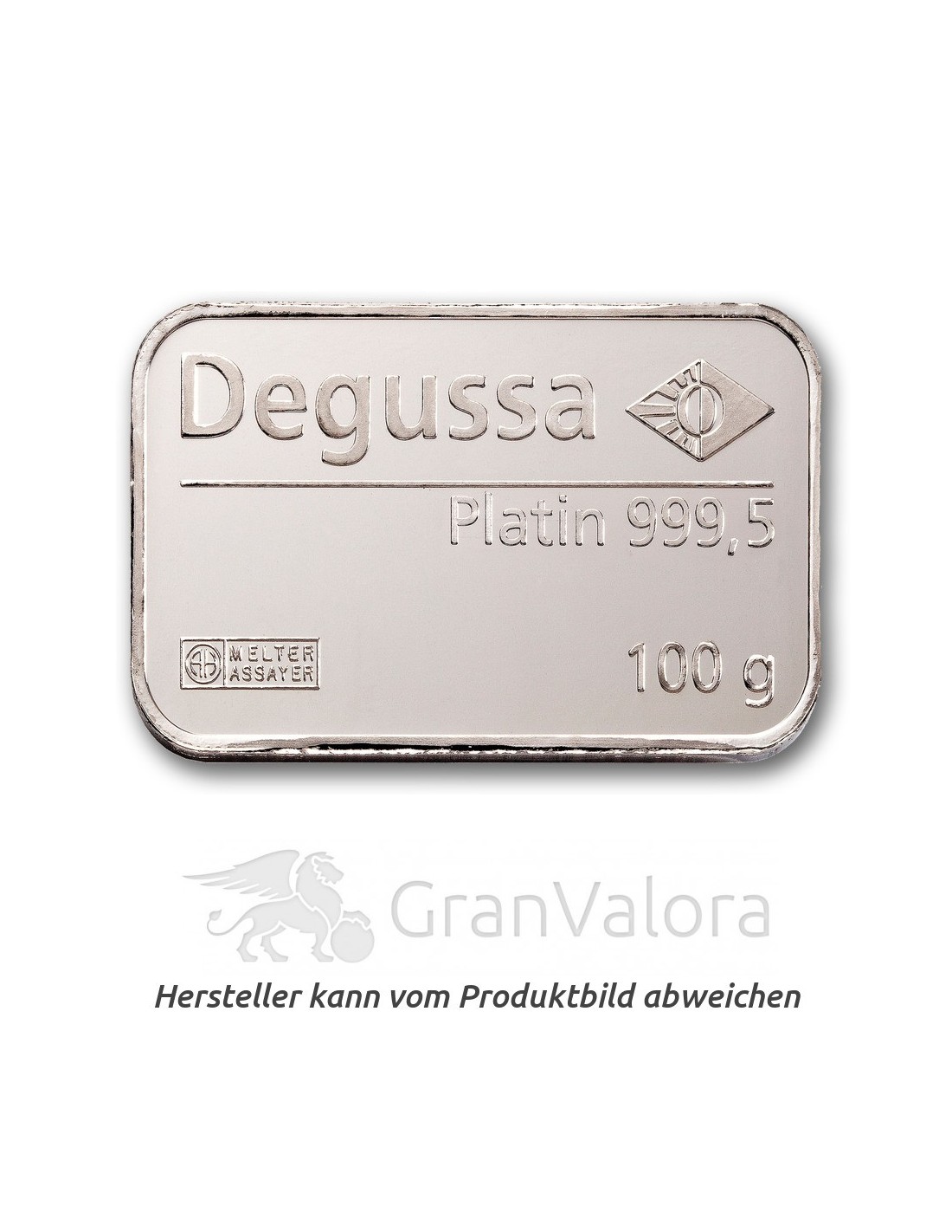 Platin besitzt die drittgrößte Dichte aller Elemente, aus dem grau-silbrigen Metall fertigt man Anlagebarren, die überwiegend geprägt und gestanzt werden. Obwohl sie kein Sicherheitsmerkmal aufweisen, genießen die von Herstellern aus der „Good Delivery List“ produzierten Barren weltweit höchste Akzeptanz, weil sie hohen Qualitätsanforderungen genügen. Zu diesen Produzenten zählt der Hersteller Heraeus, dessen Barren einzeln in einer Folie eingeschweißt geliefert werden. Auf den Platinbarren sind die Angaben zum Hersteller mit Logo - eine Hand, die ausgestreckt drei Rosen hält - sowie zur Metallart, Feinheit und dem Gewicht zu sehen.