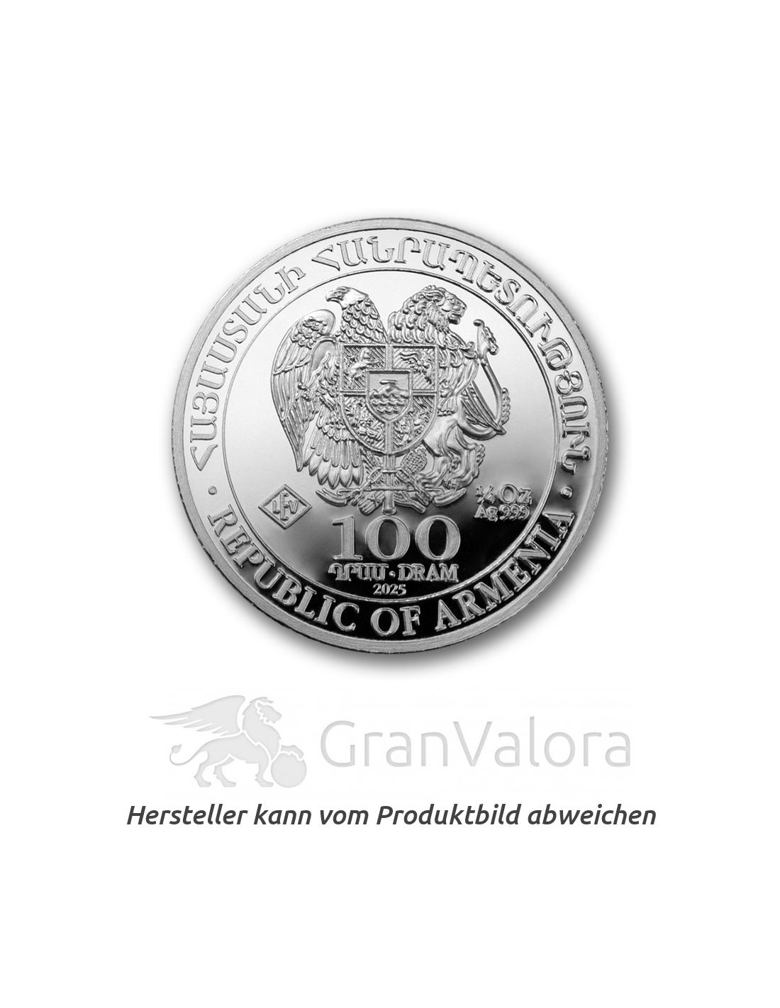 Die kleine Kaukasusrepublik Armenien trat 2011 erstmalig als Emittentin einer Silberanlagemünze in Erscheinung. Mit der „Arche Noah Silbermünze“ bereichert sie den internationalen Horizont der Münzsammler nun auf ganz besonders bezaubernde Weise. Dieses biblische Motiv aus dem Alten Testament befindet sich in filigraner Ausarbeitung auf der Rückseite. Die Vorderseite trägt das armenische Staatswappen. Die Gestaltung soll, wie bei vielen Anlagemünzen, z. B. beim „Maple Leaf“, über die Jahrgänge hinweg stetig sein. Die Münze hat einen geriffelten Rand und trägt einen Nennwert von 100 armenischen Dram. Sie ist durch die armenische Zentralbank lizensiert und offizielles Zahlungsmittel. Bei der Herstellung dieses Qualitätserzeugnisses aus feinstem Silber setzt Armenien indes auf deutsche Wertarbeit: hergestellt wird die „Arche Noah“ durch die Edelmetallverarbeitung Leipzig.